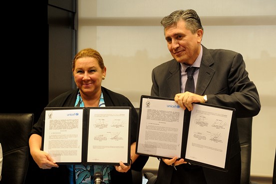 La Comisión Nacional de los Derechos Humanos (CNDH) y el Fondo de las Naciones Unidas para la Infancia (UNICEF) suscribieron hoy un convenio de colaboración para promover, desde su respectivo ámbito de competencia, la implementación de la Ley General de los Derechos de Niñas, Niños y Adolescentes. Dicho convenio fue firmado por Isabel Crowley, representante del organismo internacional en México y el Ombudsman nacional, Luis Raúl González Pérez.