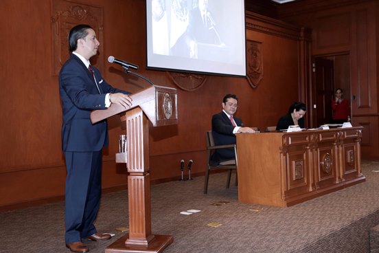Antes, Yolanda Ballesteros Sentíes dio lectura a la síntesis curricular de Arnulfo Valdivia Machuca, ratificado como Embajador Extraordinario y Plenipotenciario de México en la República de Colombia en 2013; es licenciado en Comercio Internacional por el Instituto Tecnológico de Estudios Superiores de Monterrey, fue director del Instituto de los Mexicanos en el Exterior y coordinador de Asuntos Internacionales del Gobierno del Estado de México, así como académico de la UAEM.