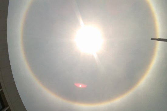 Explicó que ese halo se produce cuando la luz que emite el Sol se refracta sobre los cristales de hielo que se encuentran en suspensión en la atmósfera y se asocia a la presencia de nubes de tipo cirrostratos.