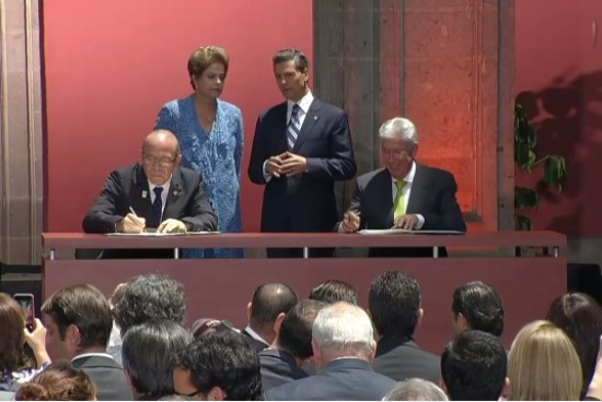 Ello, durante la vista de Estado que realiza la presidenta de Brasil, Dilma Rousseff, y tras una reunión en privado con el mandatario mexicano, Enrique Peña Nieto, en Palacio Nacional.