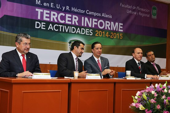 Al encabezar el Tercer Informe de Actividades del director de la Facultad de Planeación Urbana y Regional, Héctor Campos Alanís, Olvera García afirmó que esta casa de estudios está inserta en el contexto internacional; sin embargo, precisó, para consolidar su presencia en el extranjero fortalece las publicaciones conjuntas con instituciones pares, busca la titulación de doble grado y desarrolla investigación conjunta.
