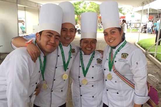 Diana del Carmen Salgado Arellano, Julio Cesar Martínez Martínez, Salvador Monroy Mercado y Fernanda Herrera Lara, alumnos de la Facultad de Turismo y Gastronomía de la Universidad Autónoma del Estado de México, obtuvieron segundo y tercer lugar en el Festival de la Paella organizado por la Finca Sala Vivé de Freixenet México, en Querétaro.