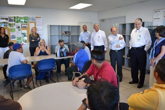 El subsecretario para América del Norte, Sergio Alcocer, se reunió con un grupo de mexicanos empleados en un campo agrícola en la provincia Columbia Británica, que participan en el Programa de Trabajadores Agrícolas Temporales (PTAT).