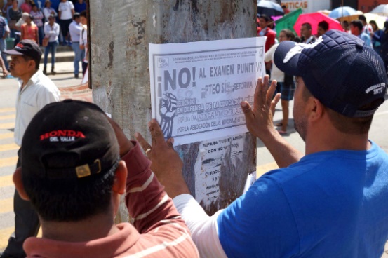 La Coordinación Nacional del Servicio Profesional Docente notificó de manera individual a los maestros de Michoacán y Oaxaca la suspensión del examen de evaluación docente al no existir todas las condiciones que garantizaran su realización.