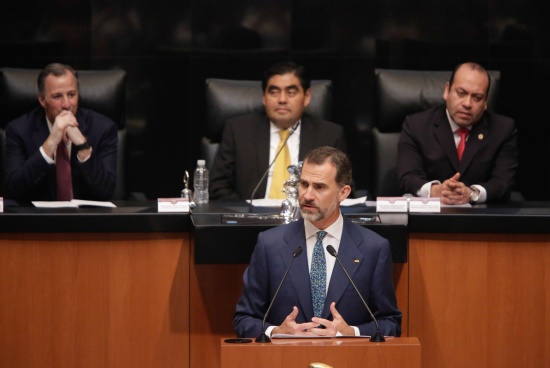 “México es una de las grandes democracias del mundo, un país dotado con sistema político abierto, vibrante y de instituciones sólidas”, abundó el monarca, quien estuvo acompañado por su esposa, Letizia Ortiz Rocasolano.