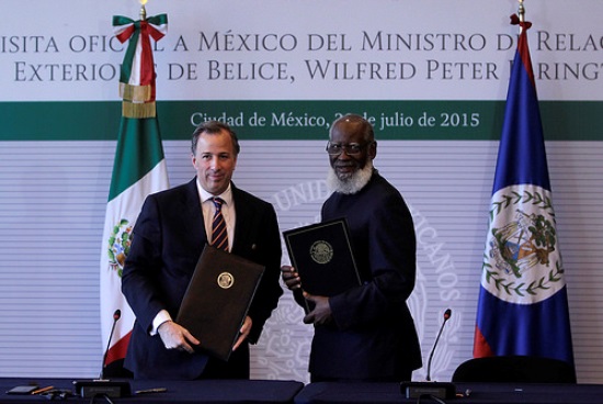 El ministro de Belice encabezó la delegación de su país que se reunió en la Secretaría de Relaciones Exteriores (SRE) con el canciller José Antonio Meade Kuribreña, quien agradeció a Elrington por ser el primer canciller beliceño que hace una visita oficial a México.