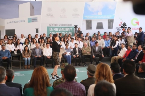 En el acto inaugural del Centro Especializado de Prevención y Rehabilitación de las Adicciones en esta localidad mexiquense –en cuya construcción la Sedesol aportó 18.7 millones de pesos mediante el Programa para la Atención de Zonas Prioritarias-, la Secretaria Robles Berlanga afirmó que más allá de las estadísticas, del número de jóvenes que consumen drogas, el gran desafío institucional es mirar al fenómeno desde la perspectiva humana y social para, desde ahí, sumar esfuerzos y enfrentarlo.