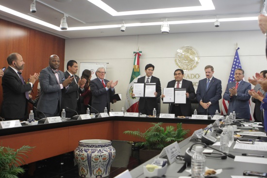 La firma de este documento se realizó en el marco de una reunión convocada por la Comisión de Relaciones Exteriores América del Norte del Senado mexicano, que presidió el secretario de ese órgano legislativo, Juan Carlos Romero Hicks.