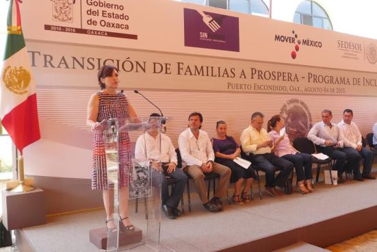 En el municipio de Puerto Escondido, ante beneficiarias de Prospera y el gobernador Gabino Cué, destacó que la federación invertirá más de dos mil 500 millones de pesos para infraestructura, alimentación, salud y conectividad de niñas y niños que viven en las comunidades más pobres.