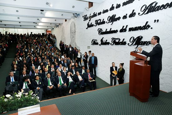 En el auditorio de la Facultad de Derecho de la UAEM, Olvera García expresó que en coordinación con el Tribunal Superior de Justicia de la entidad, se impulsó la creación de la Licenciatura en Medios Alternos y Solución de Conflictos, la cual inició con una matrícula de 60 alumnos y se enfoca en la resolución y mediación de conflictos, a fin de hacer más eficiente el sistema judicial.