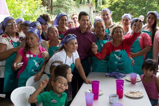 El Presidente Peña Nieto expresó su reconocimiento al trabajo que realizan las más de 70 mil mujeres que laboran voluntariamente en los comedores comunitarios que hay en el país. “Mi más amplio reconocimiento por estar apoyando y acompañando el esfuerzo del Gobierno de la República para reducir el hambre que hay entre los mexicanos”, expresó.