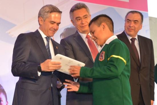 El jefe de gobierno capitalino, Miguel Ángel Mancera, entregó el primer paquete con 265 tabletas electrónicas, de más de tres mil 230 que se repartirán a alumnos de primer grado de 13 secundarias públicas, a fin de mejorar el método de aprendizaje.