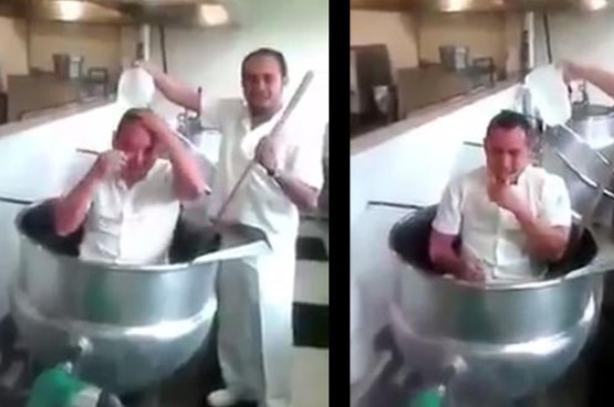 A través de redes sociales se difundió un video donde aparecen trabajadores, presuntamente del Hospital de Traumatología de Puebla, bañando a uno de sus compañeros al parecer en una de las ollas que se utilizan para preparar comida a pacientes.