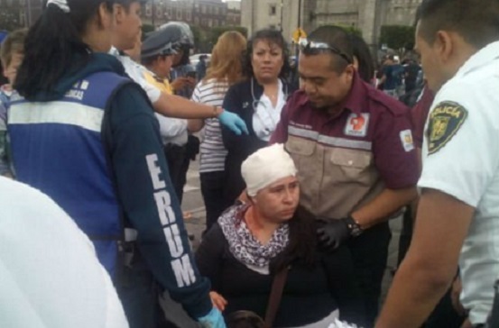 El viento y el mal anclaje provocaron la caída de una mampara de estructura metálica con motivos alusivos a la celebración del Día de Muertos en el Zócalo capitalino, lo que ocasionó afectaciones a cinco personas.