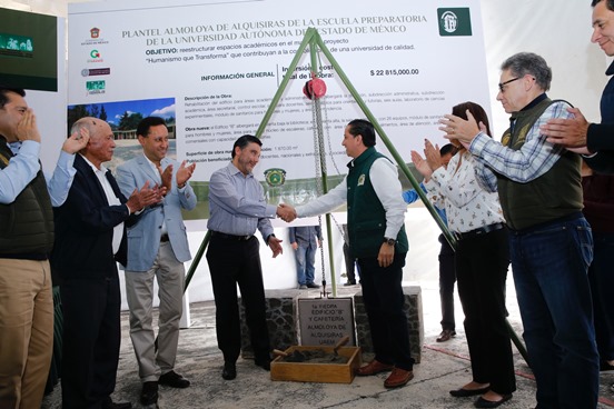 En un hecho histórico para el sur de la entidad, el rector de la Universidad Autónoma del Estado de México, Jorge Olvera García, y el presidente de la Junta de Coordinación Política de la LIX Legislatura local, Cruz Juvenal Roa Sánchez, colocaron la primera piedra del Plantel Almoloya de Alquisiras de la Escuela Preparatoria de esta casa de estudios, que ofrecerá oportunidades de desarrollo a cerca de 50 mil jóvenes con entre 15 y 19 años de edad de la región.