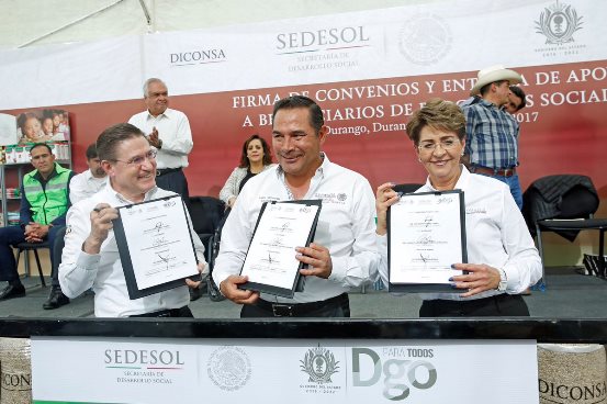 Acompañado por el gobernador José Rosas Aispuro Torres, anunció la aplicación de recursos para la entidad por la cantidad de 961 millones de pesos del Fondo de Aportaciones para la Infraestructura Social (FAIS) del Ramo 33, que dará certidumbre a los 39 municipios del estado.