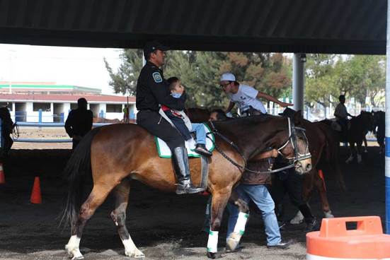 Además de apoyar en la vigilancia de zonas de difícil acceso, la Policía Montada de la Secretaría de Seguridad Pública de la Ciudad de México apoya a personas especiales con sesiones gratuitas de equinoterapia.