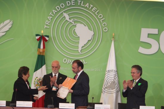 Videgaray Caso puso a disposición la diplomacia mexicana, que históricamente -dijo- ha promovido las tres «D»: desarrollo, derecho internacional y desarme, que fueron una base importante de la labor que en su momento realizó el ex canciller Alfonso García Robles, promotor del Tratado de Tlatelolco.