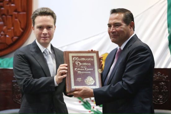 En la ceremonia realizada en el Congreso estatal, a la que asistió en representación del presidente Enrique Peña Nieto para la entrega del facsimilar de la Constitución, señaló que el andamiaje jurídico de la carta magna es un documento vivo que ha sabido adaptarse a cambios importantes.