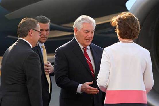 El secretario de Estado de Estados Unidos, Rex Tillerson, arribó este miércoles a las 16:38 horas a México, donde sostendrá diversas reuniones con funcionarios mexicanos.