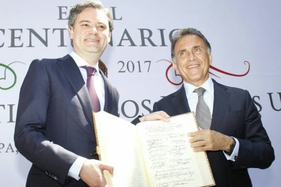 En la entrega del facsimilar de la Constitución Política de los Estados Unidos Mexicanos al gobierno de Veracruz, señaló que el desarrollo de México se da a través de la educación pública que conduce el Estado, y destacó que en el centenario de la Carta Magna México se mantiene en estabilidad, y con educación de calidad busca romper la desigualdad.