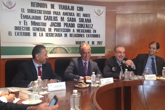 En reunión con integrantes de la Comisión de Relaciones Exteriores de la Cámara de Diputados, dijo que existen mecanismos para atender a los mexicanos, y espera que no haya deportaciones masivas, como han anunciado autoridades estadounidenses.