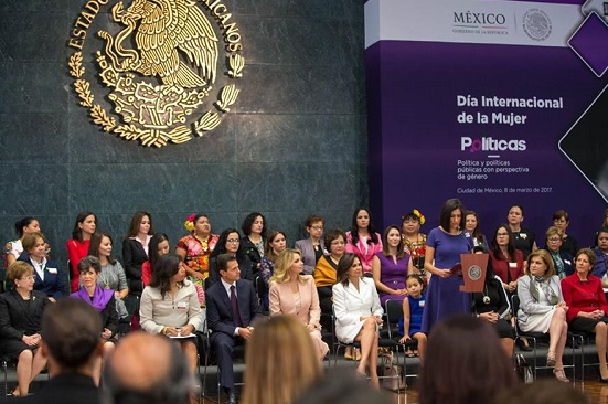 Este día, el presidente Enrique Peña Nieto encabezó la presentación del Progra, Políticas. Política y políticas púbicas con perspectiva de género, que diseñó el Inmujeres, el Tribunal Electoral del Poder Judicial de la Federación y el Centro de Investigación y Docencia Económicas (CIDE), para dar a las mujeres formación política en línea con perspectiva de género.