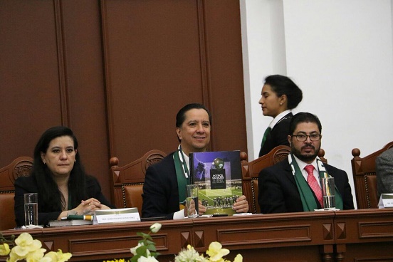 En el Aula Magna “Lic. Adolfo López Mateos” del Edificio de Rectoría, acompañado del autor del libro, Rubén Fernando Rivero Gómez, así como de Leonardo Lino Velázquez, leyenda viva y destacado head coach de Potros Salvajes, Olvera García consideró indispensable que desde las universidades e instituciones educativas se promueva la adopción de hábitos saludables y la práctica del deporte.