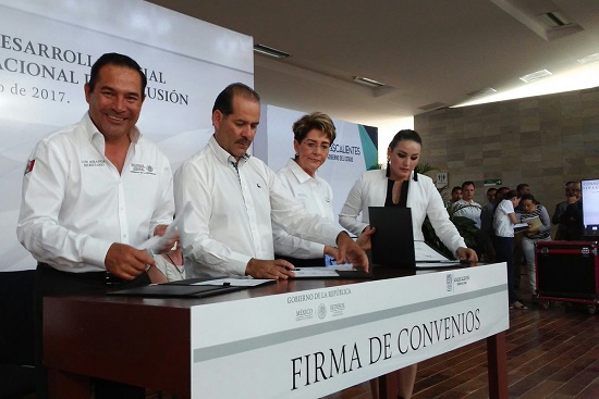 Subrayó que los convenios suscritos con el gobierno estatal “nos comprometen a trabajar en equipo para mejorar las condiciones de la población en situación de pobreza, queremos hacer equipo con Aguascalientes y su gobernador, cuenten ustedes con todo el respaldo del gobierno de la República”.