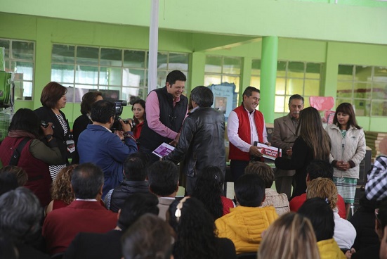 Reunidos en la escuela primaria “Benito Juárez” de San Lucas Tunco, fueron distribuidos los apoyos a los directores de planteles educativos; para el caso de Metepec, 14 escuelas tuvieron una inversión, en especie, con valor de dos millones 300 mil pesos.