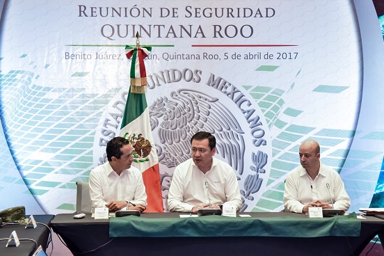 El secretario de Gobernación, Miguel Ángel Osorio Chong, y el gobernador de Quintana Roo, Carlos Joaquín González, encabezaron una reunión en la que se evaluaron las acciones instrumentadas para garantizar la seguridad a los habitantes.