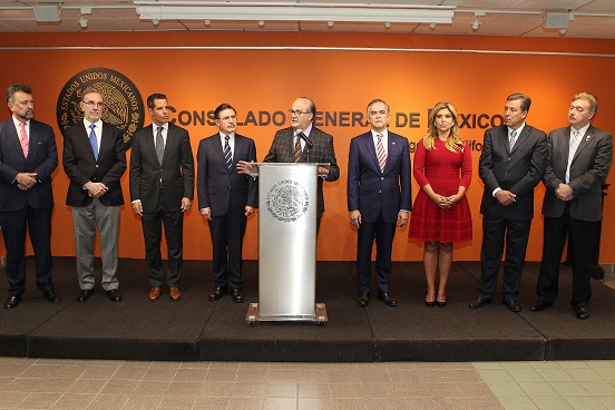 Los gobernadores estuvieron acompañados por el subsecretario para América del Norte de la cancillería mexicana, Carlos Sada, y el cónsul general de México en Los Ángeles, Carlos García de Alba.