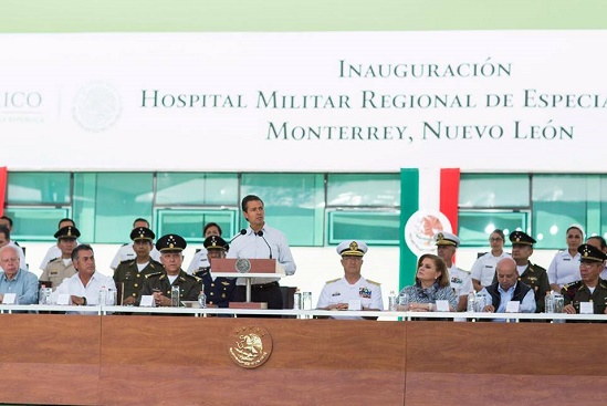 «Mientras contemos con elementos como ustedes, los mexicanos veremos el futuro con confianza y optimismo», indicó el mandatario frente a elementos castrenses, durante la inauguración del Hospital Militar Regional de Especialidades de Monterrey.