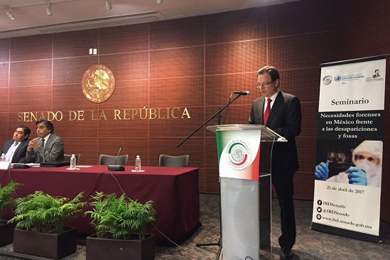 En su turno Juan-Pedro Schaerer, jefe de la Delegación del Comité Internacional de la Cruz Roja México, América Latina y Cuba, señaló que frente a las cifras de la CNDH sobre fosas encontradas y restos óseos exhumados resulta necesaria y urgente la aprobación de la Ley General sobre la Desaparición de Personas.