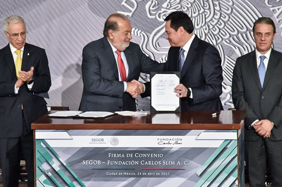 En el acto, en el que estuvo presente el empresario Carlos Slim, el titular de la Segob resaltó que para que las cosas funcionen, sociedad, sector privado y gobierno tienen que trabajar de la mano, cumpliendo cada uno su parte, presionando todos en torno al interés superior que es México.