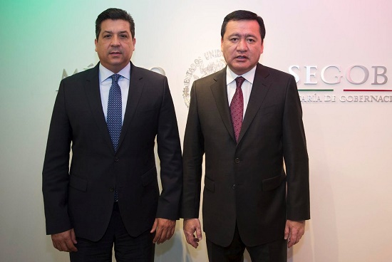 El secretario de Gobernación, Miguel Ángel Osorio Chong, sostuvo una reunión con el gobernador de Tamaulipas, Francisco Javier García Cabeza de Vaca, con el propósito de fortalecer la coordinación para recuperar la paz y el Estado de derecho de esa entidad.