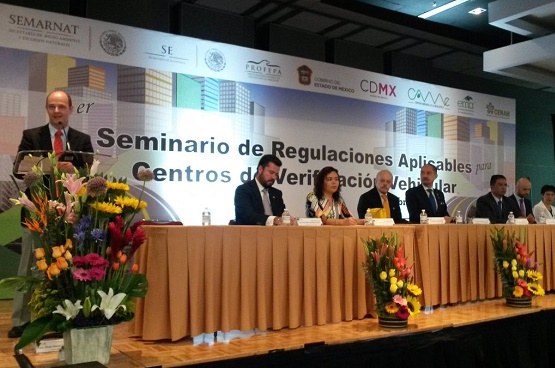 En su intervención, el presidente de la Entidad Mexicana de Acreditación (EMA), Jesús Cabrera Gómez, resaltó que la Norma Oficial Mexicana 047 de la Secretaría del Medio Ambiente y Recursos Naturales (Semarnat) establece que para enero de 2018, los verificentros deberán adquirir la figura de Unidad de Verificación Vehicular.