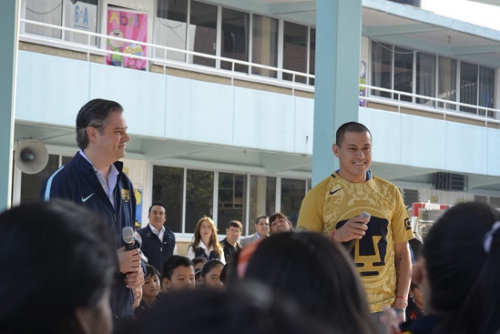 El titular de la SEP llevó a la escuela al capitán del equipo de fútbol de Pumas, Darío Verón, quien convivió con los niños y platicó su experiencia profesional en este deporte.