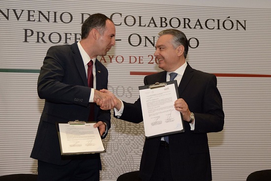 Rafael Ochoa Morales, en funciones de procurador Federal del Consumidor, y José Ángel García Elizondo, presidente de Onexpo, firmaron el acuerdo que hará corresponsables a los cinco mil dueños de estaciones de servicio que pertenecen a dicha agrupación en la defensa de los consumidores al evitar abusos en sus gasolineras y garantizar litros de a litro.