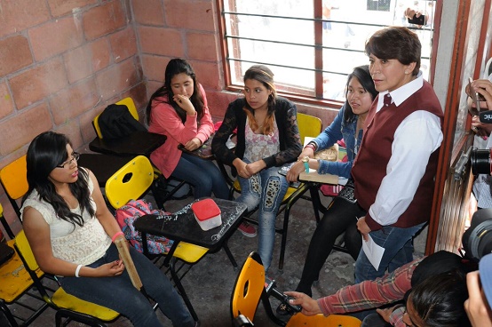 Gómez Álvarez se reunió con alumnos de la Preparatoria 296, que le solicitaron apoyo para construir más aulas ya que reciben clases en salones improvisados de ocho por seis metros cuadrados en azoteas prestadas por vecinos.