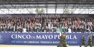 Poblanos celebran con desfile 155 aniversario de la Batalla de Puebla