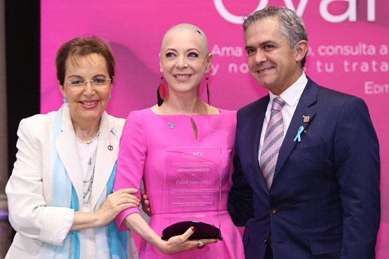 En el marco del Día Mundial del Cáncer de Ovario, Mancera entregó un reconocimiento a la actriz Edith González, quien será la imagen central de la campaña.