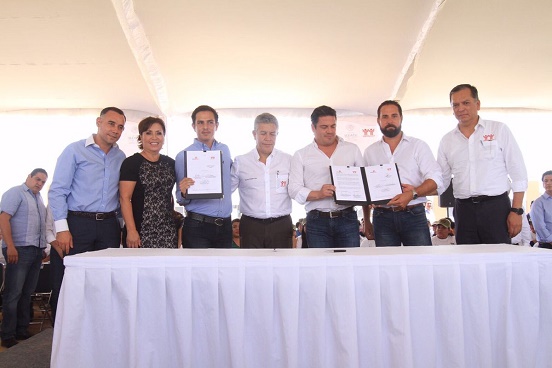La firma del convenio la hicieron la titular de Sedatu, Rosario Robles, el director general de Infonavit, David Penchyna, y el gobernador Aristóteles Sandoval Díaz, con la Asociación Nacional de Productores de Berries.