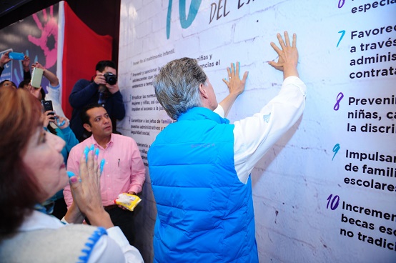En presencia del dirigente nacional de Nueva Alianza, Luis Castro Obregón; el diputado constituyente, Gabriel Quadri de la Torre, y la presidenta estatal, Lucila Garfias Gutiérrez, el abanderado turquesa mencionó cada una de las 25 acciones que asumió como propias, entre las que destacan: poner fin al matrimonio infantil; prevenir y sancionar la violencia contra las niñas y adolescentes, que tiene entre otras consecuencias el embarazo a temprana edad y por lo tanto se convierte en una de las causas de deserción escolar del nivel medio superior.