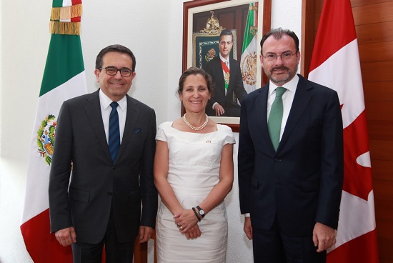 El Canciller Videgaray y la Ministra Freeland coincidieron en que la renegociación del Tratado de Libre Comercio de América del Norte (TLCAN) será trilateral.