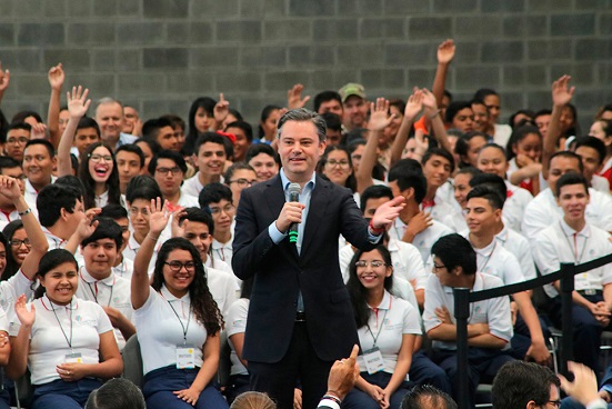A los estudiantes les dijo que México es un gran país del que hay que estar orgullosos, donde son herederos de una mezcla de culturas prehispánicas y europeas, que se han fusionado con migraciones de todo el mundo, y que hoy tiene proyecto en el siglo XXI con educación de calidad.