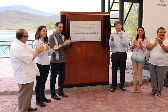 El secretario de Turismo federal, Enrique de la Madrid Cordero, entregó la primera etapa del Malecón Río Adentro, en el municipio de Jalpan de Serra, obra que embellece la zona y contribuye a la promoción turística de la Sierra Gorda queretana.