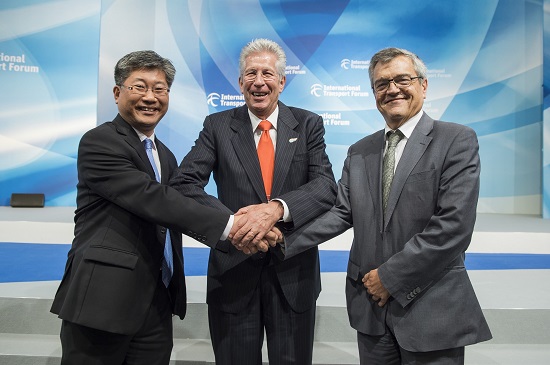 El Secretario de Comunicaciones y Transportes, Gerardo Ruiz Esparza, en su calidad de Presidente del Foro Internacional del Transporte (FIT) de la Organización para la Cooperación y el Desarrollo Económicos (OCDE) durante la Cumbre 2017 celebrada en Leipzig, Alemania, atestiguó el cambio de Secretario General del FIT.
