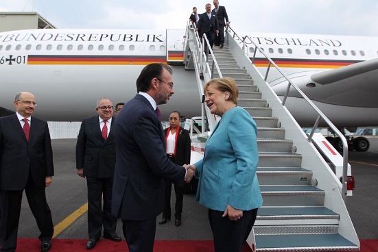 El Secretario de Relaciones Exteriores, Doctor Luis Videgaray Caso, recibió esta tarde en el Hangar Presidencial a la Canciller Federal Alemana, Angela Merkel.