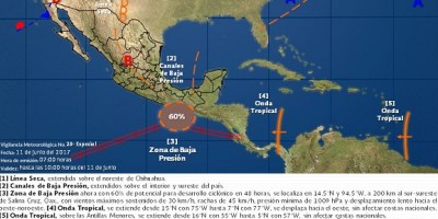 Depresión tropical 3-E cerca de Oaxaca ocasionará lluvias en ocho estados